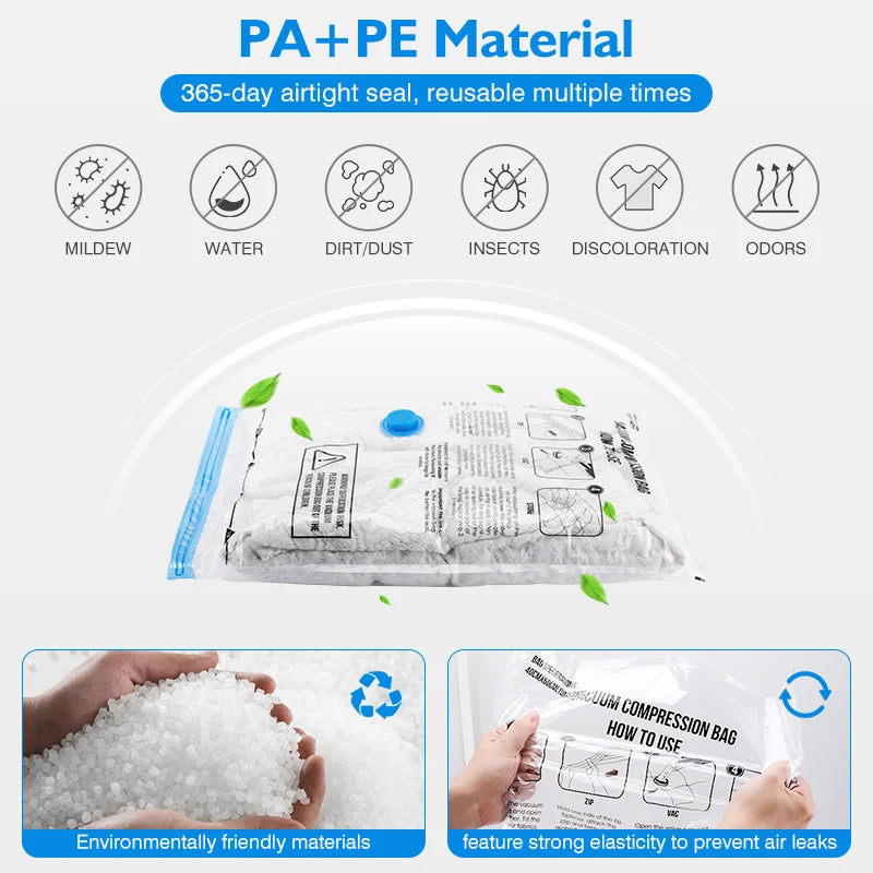 🔹 Durable & Airtight Protection: Made from high-quality, tear-resistant materials, these extra-thick vacuum bags keep your clothes, blankets, comforters, and bedding protected from dust, moisture, odors, and insects.