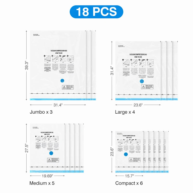 🔹 Multi-Size Pack for All Your Storage Needs: Available in 8 to 18 pieces, this set includes various sizes, making it ideal for storing everything from bulky winter jackets to delicate linens.